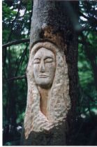 Le regard glisse de la trace sculptée à l'écorce qui éclate. Entre les deux nulle limite, nul artifice. Là un pic vert a troué le chêne, ici le sculpteur a tracé un visage. Pour l'un et l'autre, tous les éclairages naturels vont s'enflammer.
