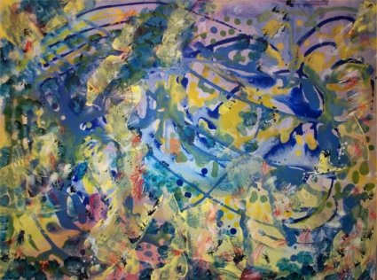 Matière : Acrylique sur toile (couteau, gravité, brosse, éponge) Dimensions : 61*46 cm Prix : 150 Euros